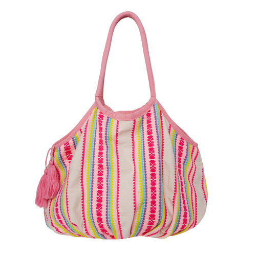 Pink/Cream Beach Bag with Tassel