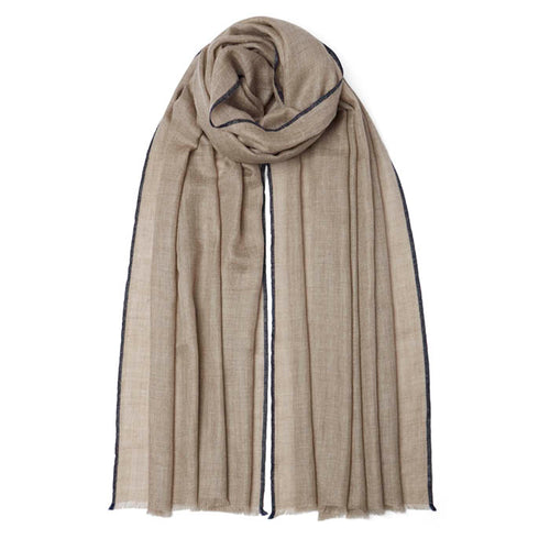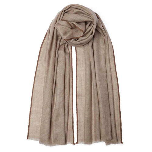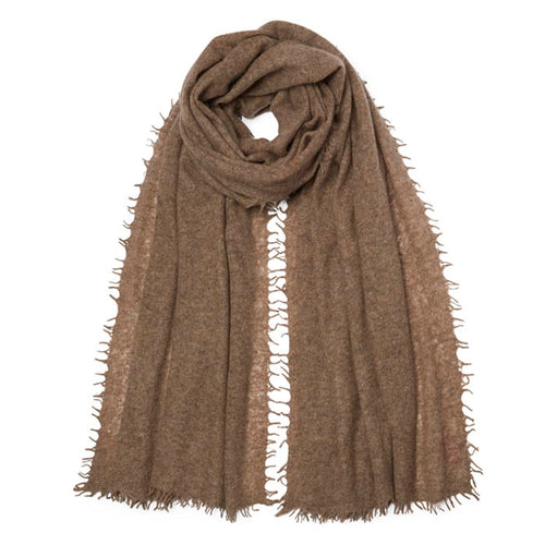 Natural Brown Fine Knitted Cashmere Scarf with fringe edge