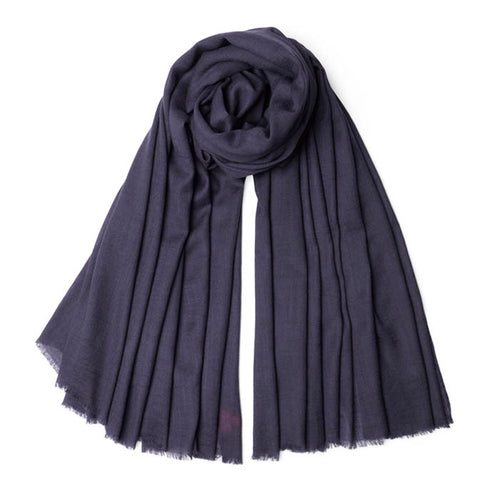 Navy Fine Knitted Cashmere Scarf with fringe edge