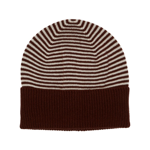 Dusky Pink/Plum Fine Stripe Cashmere Beanie
